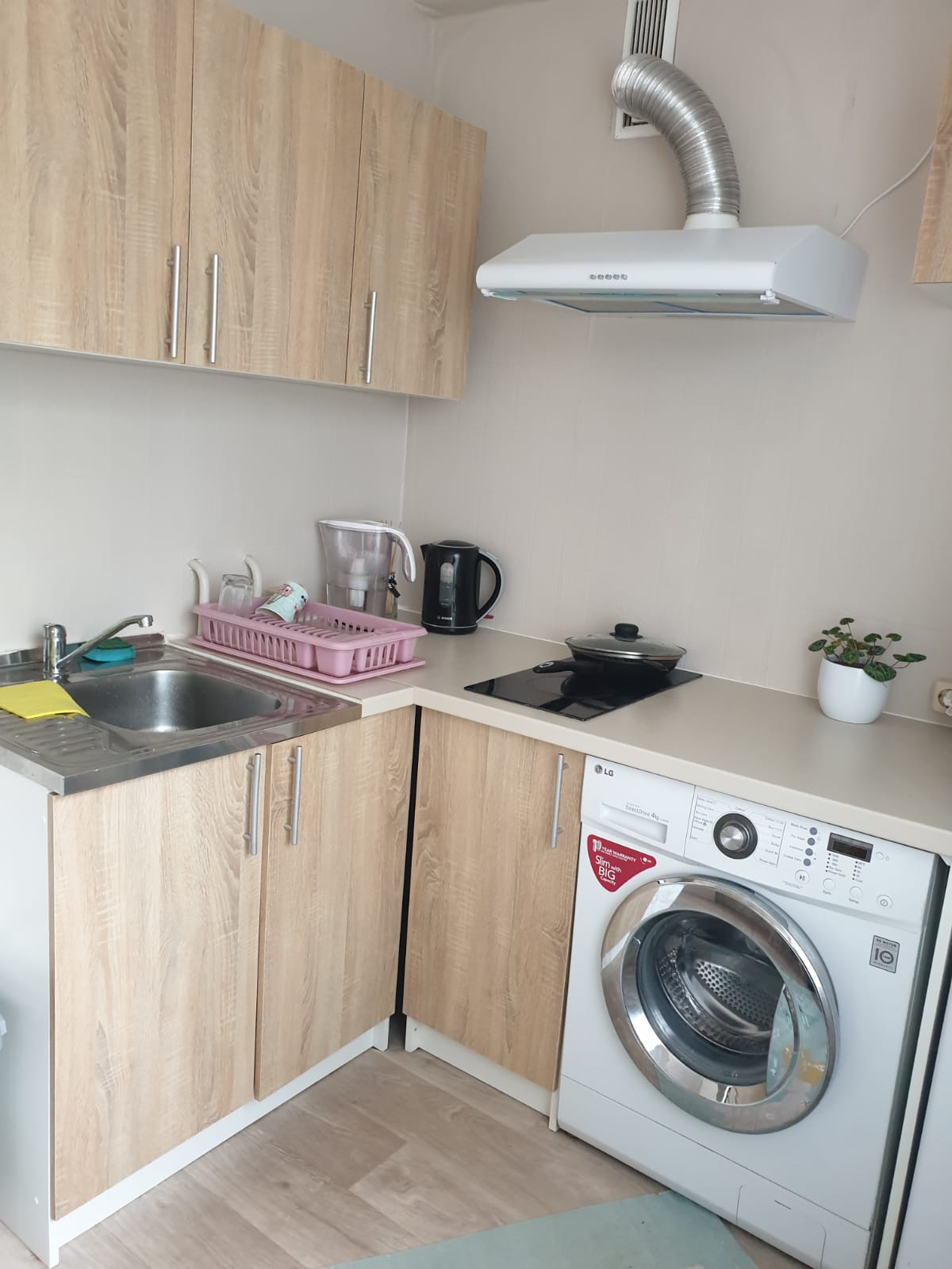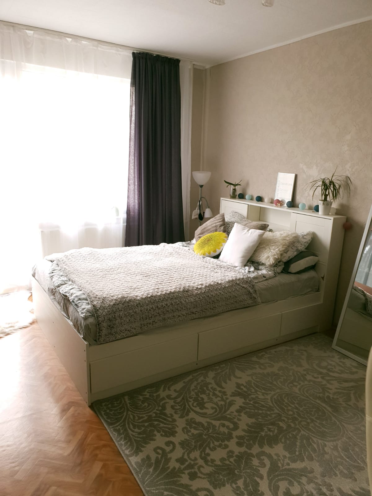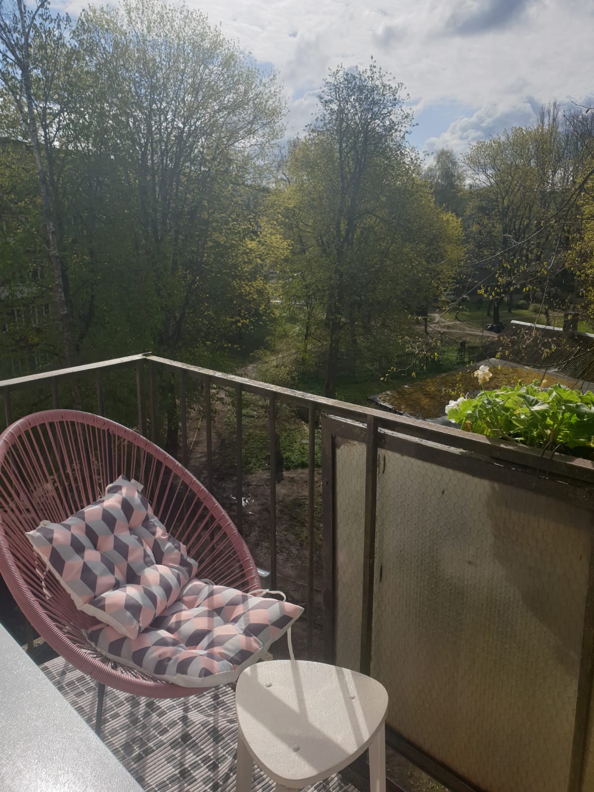 Very low utility bills: €50 in summer, €110 in winter. Bright and quiet apartment with a balcony overlooking the park. Guaranteed free parking in the courtyard (with a pass). Not a corner apartment, sunny, dry, and warm. Furnished, with appliances, meters, a closed and clean entrance, and a coded key. Nearby are a market, Rimi, Lidl, public transportation stops, schools, and kindergartens